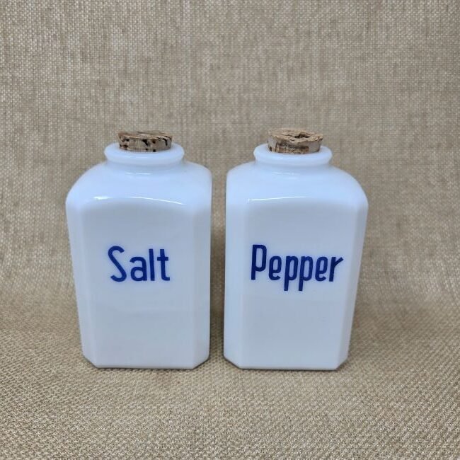 Features lettering for “Salt” and “Pepper,” in vibrant blue. A great collectable item.
