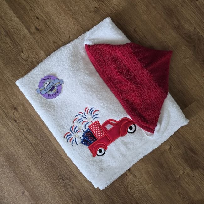 Applique Firecracker Truck – Personalized Kids Hooded Bath Towel
