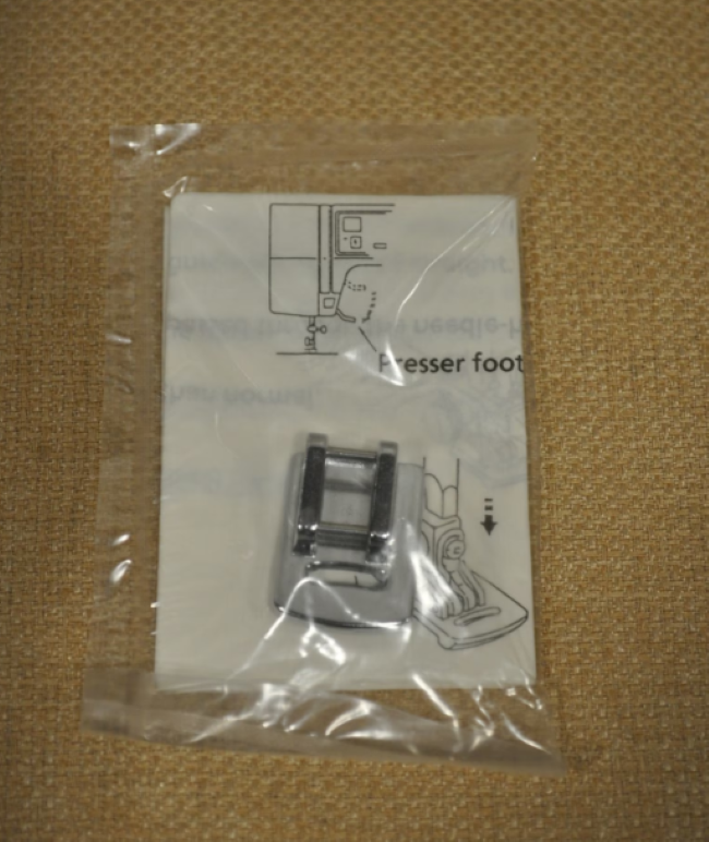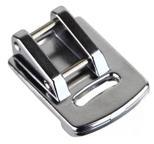 This foot is for creating soft gathers in lightweight fabrics. The underside of the foot is raised behind the needle and has a thick bar in front of the needle which adds just the right amount of pressure to create beautiful even gathers.
