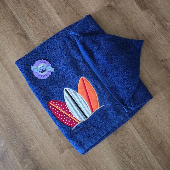 - Premade embroidered applique kid’s towel.